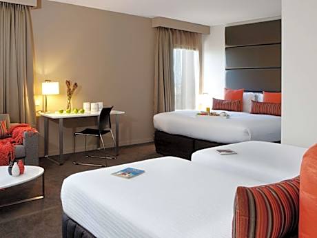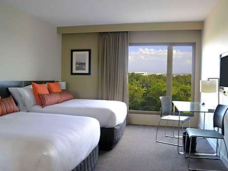 Just 0.6 mi from Sydney International Airport, Novotel Sydney International Airport features a bar, 24-hour room service and an airport shuttle. All of the renovated and refurbished rooms have views over a golf course or the airport. Guests can enjoy 30 minutes of free WiFi in the lobby. Located next to Cahill Park, Novotel Sydney International Airport is 5 minutes’ walk from Kogarah Golf Course and the Cooks River. Wolli Creek Train Station is a 15-minute walk away. The air-conditioned rooms feature blackout curtains, individual climate control, satellite TV, a tea and coffee maker and a work desk. The bathroom features a hairdryer and guest toiletries. The Marke Kitchen & Bar serves modern Australian dishes and an international breakfast buffet. The Bar offers a snack menu and a large screen showing live sports.