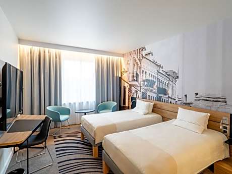 Novotel Vilnius Center is a nonsmoking hotel located in Gedimino prospektas, Vilnius’s main street. It offers air-conditioned rooms with cable TV, a mini-bar and free Wi-Fi. The hotel has a fitness center. The Novotel’s rooms are soundproofed and feature wooden furniture that includes a work desk. Each has a safe and a private bathroom with amenities and a hairdryer. Guests of the Novotel Vilnius have access to a sauna and a Turkish steam bath. There also is a playground onsite. The hotel’s staff is available 24 hours a day. Gediminas Castle is 2625 feet away. The Vilnius Cathedral is within 1640 feet from the Novotel. Pilies, a popular pedestrian street, is 0.6 mi from the Vilnius Center Novotel. The Winestone restaurant serves Lithuanian and international cuisine.