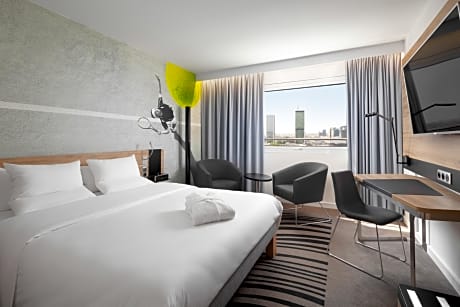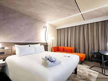 Offering panoramic views of Warsaw, the modern-looking Novotel Warszawa Centrum is located in central Warsaw, a 5-minute walk from the Central Railway Station. The hotel serves a varied breakfast. WiFi is offered throughout this 4-star hotel. All areas are nonsmoking. The air conditioned rooms at Novotel Warszawa Centrum come with a flat-screen TV, tea and coffee facilities, and a safe. There is a mini-bar at a surcharge.The rooms also have a work area and armchairs or a sofa. All feature a spacious bathroom with a bath or a shower and a hairdryer. Novotel’s air conditioned restaurant and bar, NOVO2, serves international dishes and a wide variety of drinks. Front desk staff is available 24 hours a day. The hotel also offers a Wellness Center with a sauna and a wide choice of fitness equipment. It is located on the top floor, where guest can enjoy a spectacular panoramic view of the Polish capital. Novotel Centrum is located opposite the Palace of Culture and Science. Guests can enjoy good transport connections, with the Centrum Metro Station and many bus and tram stops only steps away.