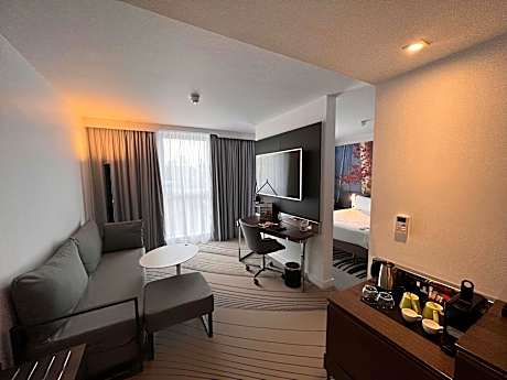 On the banks of the River Foss, Novotel York Center is located near the historical city walls and a short river stroll to the center. The rooms at the Novotel York Center are spacious and modern, with an private bathroom and separate toilet. They also feature an 55'' LCD TV, and tea/coffee making facilities. The Gourmet Bar serves a range of international dishes as well as light snacks and afternoon tea. There is a spacious outdoor terrace area. The Novotel York Center is less than 1 mile from York Minster and is a short walk from the shops, business centers and the University of York. York Railway Station is just 1 mile away. York Racecourse is 10 minutes away by car and walkable in 20 minutes. The Barbican is just a short walk away from the hotel. The pool is available from 7am-10pm subject to availability. You can book one 30 minute slot a day and these must be pre-booked with the reception desk direct or via email or phone call.