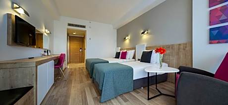 Only 656 feet from the Mediterranean Sea, this hotel has a private area at the beach. The hotel offers a large outdoor pool surrounded by palm trees, an indoor pool and air-conditioned rooms. Decorated in warm colors, the rooms of Novum Garden Side Hotel feature a peaceful setting. They all include a private balcony. The main restaurant serves breakfast, lunch and dinner as an open buffet. The à la carte restaurant offers international dishes. You can enjoy a romantic dinner at the poolside. The beach bar offers snacks and refreshing drinks during the day. The hotel has an on-site Turkish bath. You can also benefit from the fitness center, or enjoy beach volleyball. Massages can be arranged and you are welcome to use the hot tub, table tennis and babysitting services. Side town center is a 20-minute drive from Novum Garden with Side Antique Theater and Apollo Temple. Antalya Airport is 34 mi away.