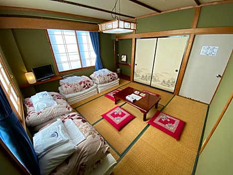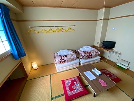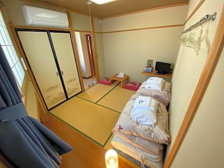 The triple room features tatami, a wardrobe, as well as a shared bathroom boasting a hairdryer and slippers. This triple room offers heating and a flat-screen TV. The unit has 4 futons.