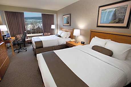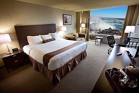 Located next door to Fallsview Casino, The Oakes Hotel features a spectacular observation lounge overlooking the Horseshoe Falls. The Falls Incline Railway, providing direct access to the Table Rock Center and Journey Behind the Falls, is less than 2 minutes’ walk from this hotel. Classically furnished guest rooms feature a 40-inch LED TV, seating area and desk. Fallsview rooms and suites boast unobstructed views of Niagara Falls. Select rooms include a hot tub. Guests have unlimited access to the 14th floor Observation level for free. The on-site Applebee’s Neighborhood Grill serves a wide range of Canadian and American food. Guests who prefer to go out for dinner can go to Remington’s of Niagara Restaurant. Upon arrival at The Oakes Hotel, guests will find a modern, open concept lobby with a fireside seating area and pod-style check-in desks. Additional amenities include an indoor pool, hot tub, sauna and fitness center. The Oakes Hotel Overlooking the Falls is 1.2 mi from the Hornblower Niagara Cruise attraction. The US border crossing at Rainbow Bridge is 1.2 mi away.