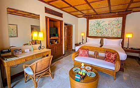 Located in Seminyak, within a few steps of Ku De Ta and 984 feet of The Seminyak Square Shopping Mall, The Oberoi Beach Resort, Bali stretches over 15 acres of tropical gardens and offers luxurious beachside accommodations filled with traditional Balinese architecture. Its outdoor pool overlooks the ocean. Free WiFi is available in all areas. Decorated with stylish teak wood furnishings, rooms are equipped with a satellite TV, a DVD player and an iPod dock. The sunken bathtub in the private bathroom opens out to a private grounds. Frangipani Cafe serves a daily breakfast in an al fresco setting, while Kura Kura serves Indonesian, Asian and Continental cuisines. Themed buffet dinners and scheduled live performances are featured at The Amphitheater. Cocktails, drinks and snacks can be enjoyed at Kayu Bar, which features views of the Indian Ocean. Overlooking a pond, Oberoi Spa has open-air massage pavilions and a variety of beauty treatments. The resort also has a tour desk and a fitness center. Languages spoken at the 24-hour front desk include English and Indonesian. Petitenget Temple is 2297 feet from the accommodations. The nearest airport is Ngurah Rai International Airport, 4.3 mi from the property.