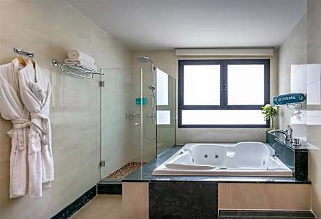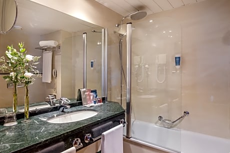 This spacious, air-conditioned room offers flat-screen satellite TV, free wired internet access and a mini-bar. The bathroom comes with a hairdryer.