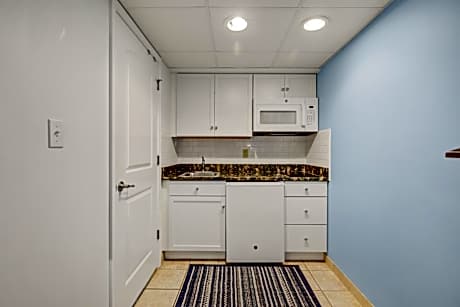 - Rooms with kitchenettes including microwave, toaster, and fridge