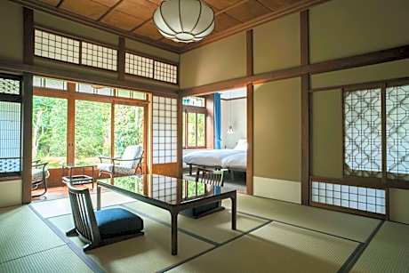 This twin room features a private open-air bath. The twin room includes a private bathroom, well-fitted with a bath, a shower, a bidet, a hairdryer and slippers. The spacious air-conditioned twin room features a flat-screen TV with satellite channels, tatami, a mini-bar, a tea and coffee maker as well as garden views. The unit has 2 beds and 2 futons.