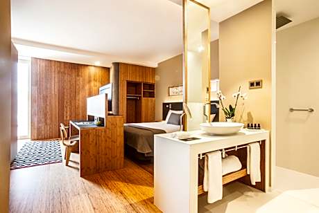 Eurostars Barcelona Central features air-conditioned rooms with satellite flat-screen TV in the Eixample district of Barcelona. Boasting a 24-hour front desk, this property also provides guests with a seasonal outdoor pool. Guests can enjoy a selection of international cuisine in the in-house restaurant. At the hotel, each room is fitted with a desk. Featuring a private bathroom, rooms at Eurostars Barcelona Central also offer free WiFi. All guest rooms include a wardrobe. Buffet and à la carte breakfast options are available every morning at the accommodations. Guests will have free access to Urquinaona We/On Gym, 2625 feet from the hotel. Eurostars Barcelona Central offers a terrace. Casa Batllo is 984 feet from the hotel. Barcelona El Prat Airport is 8.1 mi away.