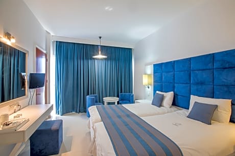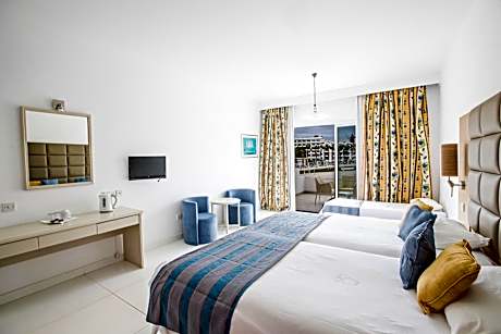 Located in Protaras and facing the beach, Odessa Beach Hotel offers an outdoor pool and a restaurant. Each room here will provide you with air conditioning and a balcony. Sunrise Beach is located 1476 feet from the hotel. All rooms feature a furnished balcony, a satellite flat-screen TV and a radio. Each bathroom comes with a shower and hairdryer. Extras include a refrigerator and a safety deposit box. Some rooms have sea views. At Odessa Beach Hotel, you will also find a bar and a tennis court. Guests can relax in the sauna or in the hot tub. A fitness center and massages are provided. Children can swim safely in their own pool, while there is also a game room with video games and animation program. The property offers free parking. Kalamies Beach is 2.5 mi away and Konnos Beach is located 4.3 mi from the hotel. Fig Tree Bay can be reached within a 9-min walk from the property. Larnaca Airport is 40 mi away.