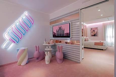 This property offers bodyguard service, dedicated to our guests and staff. Set in a prime location in Milan city center, just a few steps from Duomo Square, ODSweet Duomo Milano Hotel is a uniquely designed 4-star superior hotel inspired by the sweet products of the partner ODStores. Characterized by marshmallow pink and chocolate brown decor, rooms and suites at the hotel feature all the comforts including air conditioning, soundproofing and a satellite flat-screen TV. Guests can also relax on the rooftop bar and enjoy views of Milan Cathedral from the panoramic terrace. Nearby ODSweet Duomo Milano Hotel you will find various tourist attractions: the Galleria Vittorio Emanuele II, the Palazzo Reale and La Scala Theater.