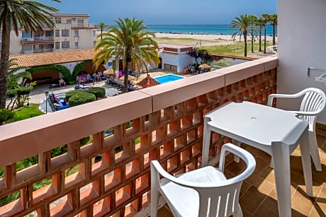 This hotel enjoys a great setting on the Comarruga Beach in Tarragona. Guests will find themselves in close proximity to many of the exciting attractions and areas of natural beauty that the region has to offer. The hotel is located just 3 km from El Vendrell Golf Course, and offers the perfect setting for guests who are eager to enjoy the exciting activities that are available in the area. Enjoying a charming architectural style, the hotel greets guests with warm hospitality and the promise of a memorable stay. The guest rooms are beautifully appointed, and feature soothing tones and luxurious furnishings. The hotel affords guests a number of exemplary facilities, catering to the needs of every type of traveller to a high level of excellence.