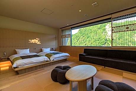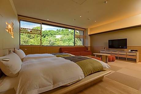 Okuhita Onsen Umehibiki offers a hot spring bath and a public bath, as well as air-conditioned accommodations in Hita, 31 miles from Kinrinko Lake. This 5-star ryokan offers an elevator and free shuttle service. The ryokan also features free Wifi, free private parking, and facilities for disabled guests. At the ryokan, each unit includes a desk. Each room includes a coffee machine, a flat-screen TV, and a safety deposit box, while some rooms include a terrace and some have mountain views. The rooms are equipped with heating facilities. There is an on-site bar. Guests can also relax in the garden. Kumamoto Airport is 39 miles from the property.