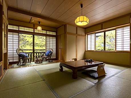 Built in 1722, Okyakuya is located in the historical district of Kurokawa Onsen district. Located only 328 feet from Kurokawa Onsen, Free WiFi is provided and private parking is available on site. Featuring tatami (woven-straw) flooring, each room at this ryokan in air conditioned and has a flat-screen TV. Selected units feature a seating area. You will find Japanese Yukata robes, slippers and a hairdryer in all rooms. Rooms come with a private toilet. Bathing facilities are shared. Guests can relax in the hot spring bath at the property. There is also a public bath that can be reserved for private use. The nearest airport is Kumamoto Airport, 24 mi from the property.