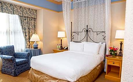 A full-service spa, a fine dining restaurant and rooms with views of the scenic Humber Valley are offered at this Toronto hotel. The Old Mill Subway Station is 820 feet away. Guest rooms at The Old Mill Toronto Hotel feature a 32-inch flat-screen TV and CD stereo sound system. All rooms have an all-season fireplace and whirlpool tub. The historic Old Mill Restaurant seats 300 guests. A dinner menu and live jazz music are available at the Home Smith Bar. Downtown Toronto and Pearson International Airport are within a 20-minute drive of the Old Mill.