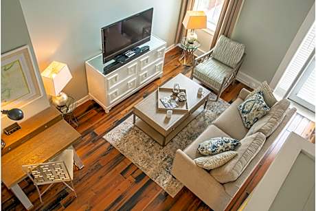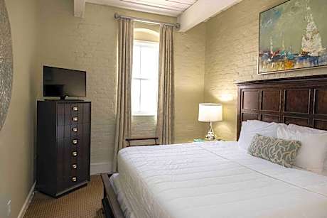 This historic 1812-era property is located in the heart of Savannah city center and overlooks the Savannah River. Features free WiFi and wine with cheese reception each evening. A small refrigerator, microwave, and flat-screen cable TV are provided in each uniquely decorated suite. Olde Harbor Inn is 49 feet from over 90 restaurants and boutiques. Guests can also relax in the lobby with free newspapers after a day a sightseeing. The Olde Harbor Inn is 6.9 mi from the Savannah Hilton Head International Airport. Tybee Island is 27 minutes' drive away.