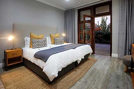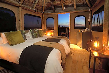 Elephants Lodge is located within the malaria-free Bellevue Forest Reserve, home to wildlife such as lion and buffalo. The lodge features natural gardens, patio’s and a lookout lounge overlooking the vast open plains of the Eastern Cape. Each room at Elephants Lodge has a patio, tea-and-coffee-making facilities and a private bathroom. Breakfast, lunch, dinner and drinks are served at various indoor and outdoor dining areas. There is a fire pit where guests can enjoy a nightcap after dinner. Guests may either book a Bed and Breakfast package or our Full Board Package which includes all meals and 1 outdoor activity per day (night stayed) on the reserve in an open game viewing vehicle, accompanied by a qualified game ranger. Outdoor activities include, game drives, giraffe walks, bush walks, bird watching and star gazing experiences. Tea and coffee are available throughout the day and sundowner drinks are offered at sunset. Younger visitors can engage in kid's excursions such as treasure hunts, scull identification and a visit to the Private Intensive Breeding Areas.
