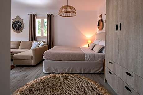Featuring mountain views, Olive Mykonos Villas in Ano Mera offers accommodations, pool with a view, and a garden. This condo hotel features free private parking, luggage storage space, and free Wifi. The accommodation provides airport transfers, while a bicycle rental service is also available. The condo hotel will provide guests with air-conditioned units offering a desk, a kettle, a fridge, a safety deposit box, a flat-screen TV, a patio, and a private bathroom with a shower. There's also a well-equipped kitchen in some units equipped with an oven, a stovetop, and kitchenware. At the condo hotel, every unit is equipped with bed linen and towels. A car rental service is available at the condo hotel. Kalo Livadi Beach is a 18-minute walk from Olive Mykonos Villas, while Mykonos Windmills is 5.3 miles from the property. Mykonos Airport is 3.1 miles away.