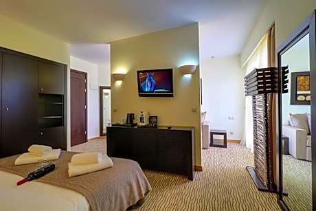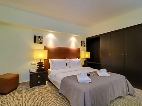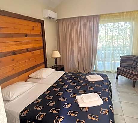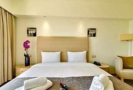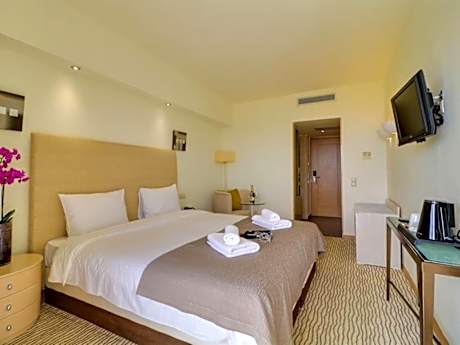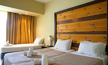 Located on the beautiful organized beach in Leptokaria, Olympian Bay Grand Resort offers modern bungalows and rooms with a host of leisure activities, including water sports and animation programs. Olympian Bay Grand Resort enjoys a picturesque location at the foot of Mount Olympus and faces the sea. Spacious rooms are decorated in muted tones and appointed with modern amenities and a spacious private balcony. Start the day with a sumptuous buffet breakfast. Enjoy beautiful views to the sea or the gardens while sipping your morning coffee. Relax around one of the 2 outdoor swimming pools or join in with the aerobics classes. Enjoy entertainment from the animation team, or play volleyball on the beach. Umbrellas and chairs are offered at beach or the pool area. The pretty town of Leptokaria is just 15 minutes walk away from Olympian Bay Grand Resort. Should you wish to explore this fascinating area by car, Olympian Bay Grand Resort can arrange car rental and offers free private parking. Pets weighing up to 15 kilograms are allowed at no extra charge, limited to one pet per stay. Pets are strictly prohibited in areas of health interest and must always be under the owner's supervision and on a leash.