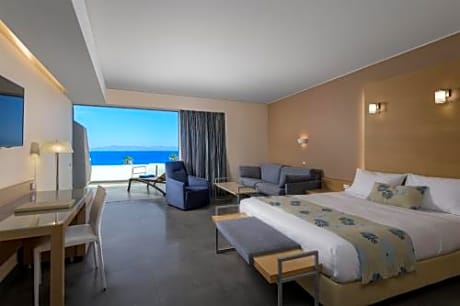 The 5-star Olympic Palace Hotel enjoys a prime location in Ixia, only yards from the beach, while at a distance of about 3.1 mi from the city of Rhodes and 6.2 mi from Rhodes International Airport. The on-site Vithos spa center includes a sauna, an indoor heated pool, 2 hot tubs, treatment and massage rooms. Rooms have sea or mountain views. Each room includes air conditioning, CD/DVD player, coffee/tea facilities, mini fridge and LCD TV with satellite channels. Free toiletries and pillow menu are available, while daily maid service is also provided. Suites also feature turn-down service, safe box and furnished balconies with sun loungers. The property also offers 3 fine dining venues with extra charge, Casa Bonita Mexican a la carte, La Tonda Pizza & Pasta and Aquamarine a la carte restaurant serving International/Mediterranean cuisine. The property offers a private beach area and 3 outdoor pools with fresh water, one of them with a children's section (2 of the outdoor pools are heated during April to mid of May & in October, subject to weather conditions). Complimentary sunbeds and parasols are available at the pool and at the private beach area. Sports facilities include a floodlit tennis court, volleyball, table tennis, mini golf court and a modern fitness center. A themed escape room as well as a state of the art video games room with latest video consoles and VR experience are also available at a charge for guests' entertainment