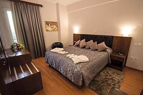Featuring a terrace, bar and views of city, Hotel Olympos is located in Pyrgos, 13 miles from Temple of Zeus. Featuring a shared lounge, the 2-star hotel has air-conditioned rooms with free WiFi, each with a private bathroom. The property has a shared kitchen, room service and luggage storage for guests. At the hotel, the rooms are equipped with a balcony. All rooms at Hotel Olympos come with a flat-screen TV with satellite channels and a safety deposit box. The accommodation offers a buffet or continental breakfast. Speaking Greek, English and French at the 24-hour front desk, staff are ready to help around the clock. Archaeological Museum of Ancient Olympia is 13 miles from Hotel Olympos, while Ancient Olympia is 14 miles away. Araxos Airport is 40 miles from the property, and the property offers a paid airport shuttle service.