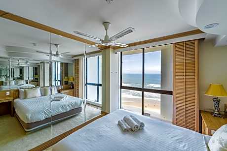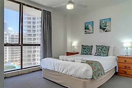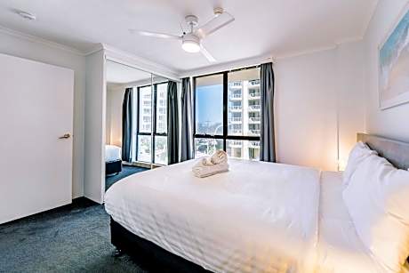 With an amazing beachfront location at Surfers Paradise and 180-degree views of the Pacific Ocean, the fully self-contained Olympus Beachfront Apartments offer home comforts and hotel amenities. All Olympus Apartments have full kitchen, laundry and ironing facilities. The bright and large living rooms have a flat-screen TV with free cable channels. Enjoy ocean views from the private balcony. You can unwind by the pool or in the sauna or have a barbecue. When you are ready to go out, the beach is right on your doorstep. A few minutes' walk will take you to Cavill Mall, the heart of Surfers Paradise, and many restaurants, bars and cafes. Free and secure underground parking is available to all guests. Apartments are located just a 2-minute walk from the Gold Coast G-link Tram Cypress avenue station, and 492 feet from Ferny Avenue Bus station. The tour desk can organize visits to the many Gold Coast attractions, including Seaworld, Movie World, Dream World and Wet 'n' Wild theme parks. Olympus Apartments are self-contained apartments. Daily housekeeping can be requested at an additional fee. A deposit payment is required to secure the booking.