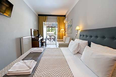 OPERA BLUE Hotel Gouvia Corfu features a seasonal outdoor swimming pool, garden, a shared lounge and terrace in Gouvia. With free WiFi, this 4-star hotel has a restaurant and a bar. The property provides airport transportation, while a car rental service is also available. The hotel will provide guests with air-conditioned rooms with a desk, a safety deposit box, a flat-screen TV, a balcony and a private bathroom with a shower. Guest rooms will provide guests with a fridge. Speaking German, Greek, English and French, staff are ready to help around the clock at the reception. Gouvia Beach is a 1-minute walk from OPERA BLUE Hotel Gouvia Corfu, while Port of Corfu is 4.6 miles away. Corfu International Airport is 5.6 miles from the property.