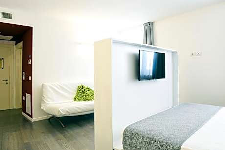 On The Rock is set 328 feet from the medieval Castle in Arco, and offers free Wi-Fi, air-conditioned rooms, and a bar. Hosting permanent exhibition by local artist Dimitri Mitija Alberti, it includes a wellness center. All reachable with a elevator, rooms and suites boast mountain views and ultra-modern furnishings. They come with an LCD satellite TV, mini-bar and private bathroom. Superior rooms and suites also feature a seating area with sofa. A continental breakfast buffet is served each morning in the breakfast hall or on the terrace. On the 3rd floor, there is a garden complete with a hot tub, and the indoor gym includes a boulder for climbers. The spa includes a sauna and Turkish bath, both bookable at reception. Popular activities in the area include cycling, canyoning and nordic walking. You can go sailing on Lake Garda, which is 3.7 mi away.