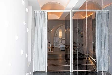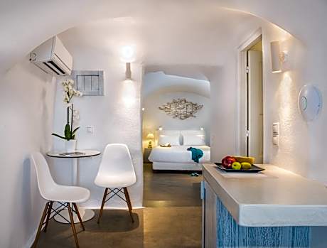 On The Rocks is ideally located in the famous village of Imerovigli. It is only 1.2 mi from Fira town and built on the steep rocks, 656 feet from the Caldera basin. All the residences have breathtaking views and verandas overlooking the Caldera and the sea. All rooms have traditional décor, combined with modern elegant elements. Every room is designed to make the most of the view from their shared verandas. On the Rocks is a property built in a traditional Aegean Cycladic architecture with spa facilities, ready to offer you an unforgettable stay. Enjoy the magnificent sunsets of Santorini from the hotel's outdoor pool, listening to relaxing music. Next to the swimming pool you may enjoy your favorite cooling drinks, cocktails, light snacks and delicacies. Tavernas and restaurants are only 656 feet away, while the bus stops at 98 feet. The distance from Santorini Airport and Port is 5 mi. Oia is 6.2 mi away and the closest beach (Kamari or Monolithos) is 6.2 mi away.