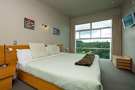 One Burgess Hill offers a choice of 15 self-contained units overlooking the stunning Waiwhakaiho River and native landscape. It provides modern rooms, some of which feature a wood burning fire and private outdoor spa. New Plymouth city center is a 5-minute drive from One Burgesshill. New Plymouth Airport is only a 15-minute drive away. Each studio and apartment features heating, flat-screen satellite TV. They are equipped with a microwave, a mini-fridge and an electric stove top with 2 hobs. Some come with a spa bath and air-conditioning. Guest laundry and BBQ facilities are available. Breakfast and dinner can be delivered to your room. It is a 5-minute drive to local restaurants. Our modern restaurant café is overlooking the beautiful Waiwakaiho River and native bush. We offer brunches, lunches, small plates and dinner menu.