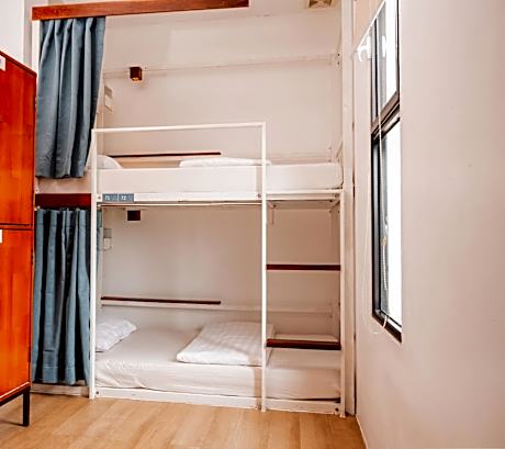 This bed in dormitory features a tumble dryer, air conditioning and tile/marble floor.