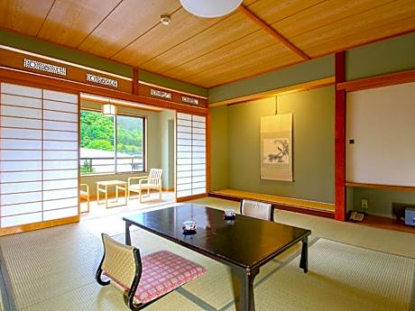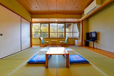 The spacious family room provides air conditioning and tatami, as well as a shared bathroom featuring slippers. This family room features an electric kettle, heating and a flat-screen TV. The unit offers 5 futons.