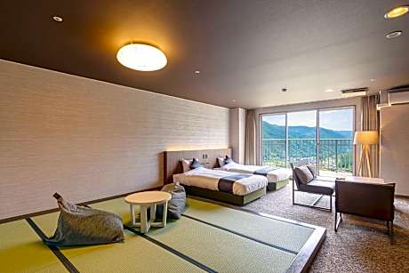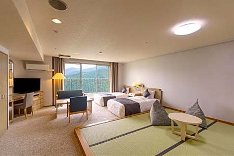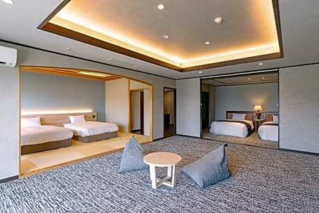 The spacious family room offers air conditioning, tatami, as well as a private bathroom boasting a bath and a shower. The family room provides a safe deposit box, an electric kettle, a carpeted floor, heating and a flat-screen TV. The unit has 6 beds.