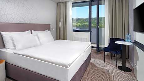 OREA Resort Santon Brno is located in Brno, within 5.5 mi of Špilberk Castle and 5.5 mi of Trade Fairs Brno. Among the facilities of this property are a restaurant, a 24-hour front desk and an ATM, along with free WiFi throughout the property. Guests can use the spa and wellness center with an indoor pool, fitness center, and sauna, as well as a terrace. The hotel will provide guests with air-conditioned rooms offering a desk, a kettle, a fridge, a safety deposit box, a flat-screen TV, a balcony and a private bathroom with a shower. At OREA Resort Santon Brno every room comes with bed linen and towels. A buffet, continental or Full English/Irish breakfast is available daily at the property. You can play tennis at this 4-star hotel, and the area is popular for hiking and cycling. St. Peter and Paul Cathedral is 6.2 mi from the accommodations, while Brno Main Station is 6.2 mi away. The nearest airport is Brno–Turany Airport, 13 mi from OREA Resort Santon Brno.