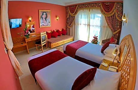 Between the Sinai Desert and the Red Sea, Oriental Rivoli Hotel offers 3 swimming pools and a private beach. It also has a hammam and rooms with LCD TVs. Decorated in luxurious oriental style, all rooms come with individually-controlled air conditioning and minibars. Each has a work desk and a safe. Some rooms feature private balconies. Lavish amenities include massage facilities and a hot tub. Water activities including diving and snorkeling can be organized at the private beach. Oriental Rivoli has 2 restaurants, 2 bars and a cafe with a shisha lounge. Guests can enjoy local and international cuisine on the open-air terrace with mountain views. Free Wi-Fi is available in all outdoor areas. This 4-star hotel is in a quiet location close to Naama Bay’s bars and restaurants. It is a 15-minute drive from the Sharm el-Sheikh International Airport.