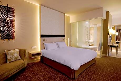 Oubaai Hotel Golf & Spa in Herolds Bay features an 18-hole golf course designed by Ernie Els. The resort has 3 gourmet restaurants, an award-winning spa and panoramic views of the ocean and Outeniqua Mountains. All of the stylish rooms and suites at the Oubaai Hotel Golf & Spa feature a spacious marble bathrooms with glass-enclosed rain showers, separate baths and environmentally friendly bath products. Guests can relax in front of the 32-inch LCD TV with cable and satellite channels. Cucina serves breakfast in a contemporary setting with indoor and outdoor seating, while meals can be enjoyed in a cozy environment at Herolds Bistro and Bar. The more casual Clubhouse Restaurant offers views of the surrounding golf course. Oubaai Hotel Golf & Spa offers a range of traditional African remedies and European treatments in the Freesia Spa. Guests can also enjoy the swimming pool and the gym, which features sophisticated cardiovascular and weight-lifting equipment. Other facilities offered include a tennis and squash court, a business and conference center, a whale viewing deck, and a Golf Pro shop. The hotel is a 10-minute drive from George Airport.