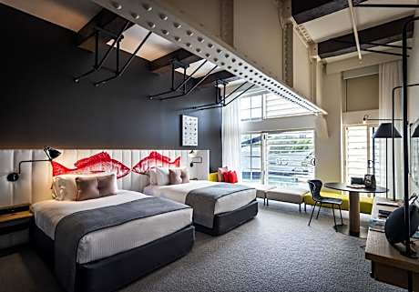 Ovolo Sydney Woolloomooloo, a Wyndham Hotel is a 5-star hotel located in Sydney. All accommodations offers Google Chromecast and unique historic fittings. Guests enjoy an indoor pool and a fitness center. The hotel is located in Woolloomooloo, next to the Royal Botanical Gardens. It is a 15-minute walk from Sydney Opera House. Accommodations options include private rooms and loft suites. All rooms and suites include free WiFi, access to a fitness center and pool and free self-service laundry throughout the stay. Each features ultra-modern furnishings, a LCD Smart TV and luxurious bedding. Guest facilities include a personalized concierge service, in-room massages and a valet laundry and dry cleaning service.