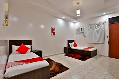 OYO 301 Asfrine Hotel Apartment is located in Tabuk, 7 miles from Al Raqi Mall. Among the facilities at this property are a 24-hour front desk and room service, along with free WiFi throughout the property. The hotel has family rooms. The rooms in the hotel are equipped with a TV. At OYO 301 Asfrine Hotel Apartment, rooms contain air conditioning and a private bathroom. The nearest airport is Tabuk Regional Airport, 7 miles from the accommodation.