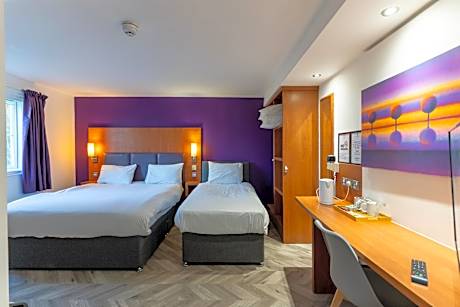 The 3 Star Tyger Inn Derby hotel is just a 7 minute drive from Derby City Center. It offers en-suite accommodations with a garden view, free parking for guests and free WiFi throughout the property. All rooms have a modern decor with a private bathroom, wardrobe, desk, flatscreen TV, hairdryer, while some rooms also include a fridge. The hotel also features triple and family rooms. The property is located just 5.2 ft from Kedleston Hall, 5.2 ft from University of Derby, 33 ft from Calke Abbey, 12 ft from Pride Park and a 25-minute drive from Alton Towers Theme Park. The nearest airport is East Midlands Airport which is only 11 miles from Tyger Inn Derby. A38, M1 and A50 roads are in easy reach of the property.