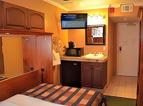 Located in downtown Redwood City, Kasa Niche Hotel Redwood City under new management property is just 5 miles from Stanford University. It features free Wi-Fi, free coffee in the lobby each morning and guest laundry services. The simply styled rooms also include a work desk and ironing facilities." with "A small fridge is standard in every room at Kasa Niche Hotel Redwood city. A communal microwave is located in the lobby of the building for guests to share." California’s Great America and San Francisco International Airport are each less than a 30-minute drive from Kasa Niche Hotel Redwood City. Silicon Valley in Palo Alto is a 14-minute drive away.