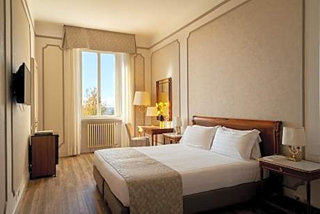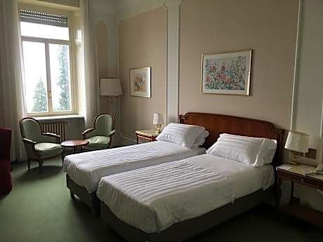 The elegant Palace Grand Hotel, surrounded by a beautiful park, offers quality and stylish accommodations in the center of Varese, with excellent connection to Milan and its airports. All the recently renovated rooms, located on 5 floors, offer an amazing view on the surroundings of Lake Varese. The panoramic Liberty Restaurant overlooks the lake and is open all week. Vegetarian menus are available. In the morning an American buffet breakfast is served. Palace Grand Hotel Varese has a summer bar with terrace, a gym, an outdoor swimming pool and a professional massage service, available upon request. Varese Train Station, 1.2 mi away, offers connections with Milan.