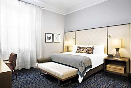 - Historic Charm: Experience rooms with leather tufted headboards, high ceilings, and custom furnishings inspired by the hotel's origins.