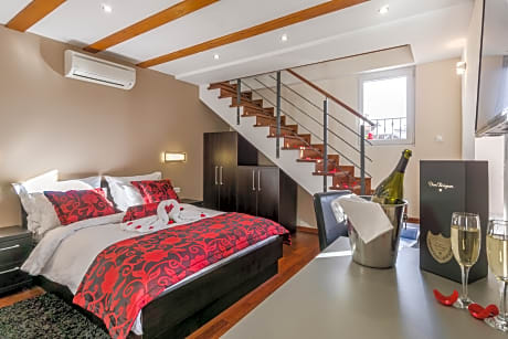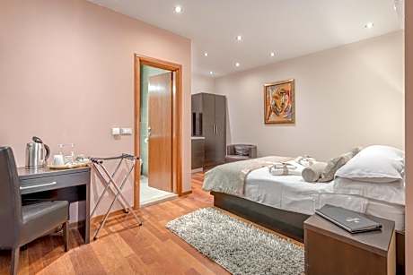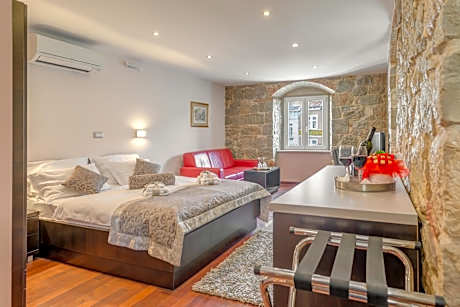 Located right next to the UNESCO-protected Diocletian's Palace in Split, Palace Suites provides luxuriously equipped accommodations with numerous amenities like flat screen TVs, king-size beds and free WiFi. The ancient stone of the Palace and the modern furniture blends extraordinarily with the exotic Brazilian hardwood floors. All rooms are equipped with air conditioning, a mini-bar and a private bathroom, with a bathrobe and a hairdryer provided. A desk and a safe are also standard in all rooms. Under your windows you will experience the lively atmosphere of Split's Main Square: charming cafés, operas, concerts and other performances as well as sophisticated shops and, above all, the breathtaking historical architecture. Full buffet breakfast is available upon prior reservation and served in the Breakfast Lounge from 7:30 to 10:30. Numerous restaurants that serve various types of cuisines can be found a short walk from Palace Suites. Split Airport is 14 mi away and airport shuttle is available at a surcharge.