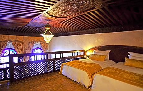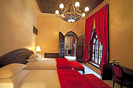 Palais Shéhérazade is located in the heart of Fez's Medina. The property is a XIXth century palace and a former Vizir residence. It is accessible by car. Its gastronomic restaurant is highly acclaimed in the city, serving Moroccan specialties on a panoramic terrace. Every morning a continental breakfast is served. In the evenings relax on the terrace and enjoy regional cuisine in the authentically decorated dining room. Guest rooms are individually decorated in traditional furnishings and Moroccan artwork. They are spacious and feature a flat-screen TV, mini bar and private bathroom. Guests have access to an indoor swimming pool with hydro-massage, an outdoor swimming pool, hammam, sauna and massage treatments. Tour and excursions in Fez can be organized from Palais Shéhérazade. Free Wi-Fi is available in the hotel’s common areas.