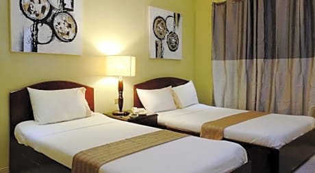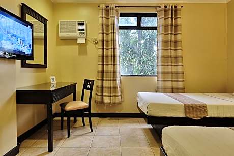 Air-conditioned room with a cable TV and private bathroom with free toiletries.