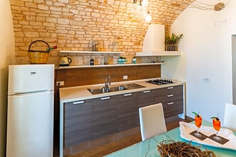 Housed in a Trullo, this air-conditioned suite features antique furnishings, underfloor heating and a flat-screen TV. It also comes with a safety deposit box and private bathroom comes with a hairdryer and free toiletries.