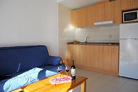 The Palmera Beach aparthotel is located just 328 feet from the beach and close to 4 golf courses. It has free onsite parking and a seasonal swimming pool. The apartments all have 2 bedrooms, a lounge-kitchen, bathroom and a large terrace. The AP-7 motorway is just over 0.6 mi away. License Number(s): EEAT-2-A