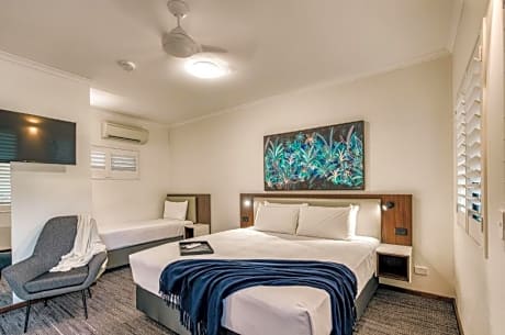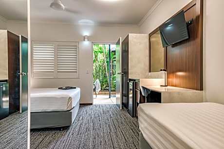 On the beautiful Esplanade, the Palms City Resort provides a relaxing oasis surrounded by lush tropical gardens in the heart of Darwin’s central business district. The centrally located Palms City Resort features villas and rooms that are fully air-conditioned and furnished with fresh colors. Guests can laze around the pretty landscaped pool in green surroundings, and relax on the sun loungers. With the center of Darwin only a short drive away, guests can conveniently enjoy all that the city has to offer. Business guests will be pleased with the resort’s convention facilities and the short travel time to the office buildings. Leisure guests can easily enjoy the vibrant shopping, dining and entertainment scene in the city.
