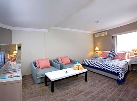 Paloma Marina Suites - Adult Only has a seasonal outdoor swimming pool, fitness center, a garden and restaurant in Kuşadası. Featuring a bar, the hotel is close to several noted attractions, around a 2-minute walk from Kusadası Sahil Beach, 200 yards from Kusadasi Marina and 1.2 miles from Kusadasi Castle. The property has a 24-hour front desk, airport transportation, room service and free WiFi throughout the property. All rooms at the hotel come with air conditioning, a seating area, a flat-screen TV with satellite channels, a safety deposit box and a private bathroom with a shower, free toiletries and a hairdryer. The rooms are equipped with an electric tea pot, while certain rooms also offer a balcony and others also have city views. The rooms feature a closet. The breakfast offers buffet, continental or vegetarian options. You can play pool, table tennis, and darts at Paloma Marina Suites - Adult Only. Church of Mary is 11 miles from the accommodation, while Great Theatre of Ephesus is 12 miles from the property. Izmir Adnan Menderes Airport is 50 miles away.