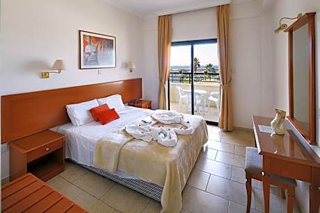 Located on the Coral Bay of Paphos, Panareti Coral Bay Villas offers self-contained accommodations just 328 feet from the sea. Facilities include a seasonal outdoor pool, indoor heated pool and hot tub. There is also a gym, sauna and free WiFi throughout. Coral Bay Beach is only 1640 feet away. The comfortably furnished apartments, each with a luggage table and 2 arm chairs, are air conditioned. The kitchenette is fully equipped with cookware and utensils and kettle, and includes a small dining table, a microwave and a fridge. A satellite TV, safe and DVD player are featured. The hotel restaurant serves delicious international food throughout the day. A variety of refreshments and drinks are provided at the lounge bar. Guests can relax at the lobby with a satellite TV corner, and there is also a mini market on site. Children can swim safely in their own pool, while there is also a playground in the garden. Kids menu is available at the restaurant, as well as high chairs. Panareti Coral Bay is only a 5-minute drive from Paphos Town. The property has the perfect location from which to explore the wild beauty of the Akamas, the sandy beaches of Cyprus' western coast, and the hillside villages in the wine region.