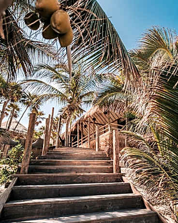 Papaya Playa Project, Tulum, a Member of Design Hotels is a sustainable boutique hotel complex of beachfront cabins and cottages, located on Mayan Riviera in Tulum. Set on a 900-yard stretch of private beach, it offers rustic accommodations with panoramic views of the Caribbean Sea. a 24-hour front desk is available. The eco-friendly cabins at Papaya Playa Project, Tulum, a Member of Design Hotels are modestly decorated, with high ceilings, a private bathroom and lots of natural light. Some have sea views or views of the tropical gardens. Papaya Playa Project, Tulum, a Member of Design Hotels organizes events every saturdays and once a month a full-moon party. All the events feature music from international DJs at its beach bar.There is also a spa specializing in Mayan Shaman therapies. Water sports and fishing are all available on the nearby beaches. Guests staying on weekends will receive free admission to the Saturday's celebrations. The Tulum ruins are located 0.6 mi from the Papaya Playa Project, Tulum, a Member of Design Hotels. Cancún International Airport can be reached by car in 1 hour and 30 minutes.